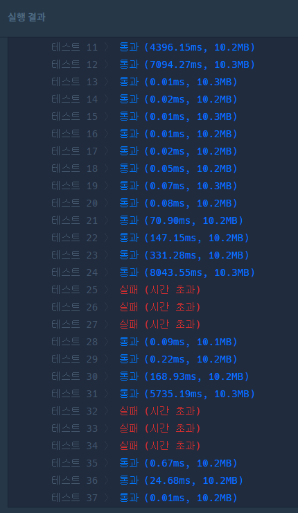 결과부터 말하면, 왼쪽 사진처럼 시간 초과가 났다.