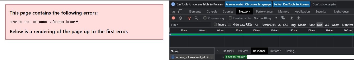 개발자 모드를 키고, Network를 열어둔 다음 HTTP 200 응답(녹색)이 나타나면 access_token=XXXXXXXX와 같이 나온다.