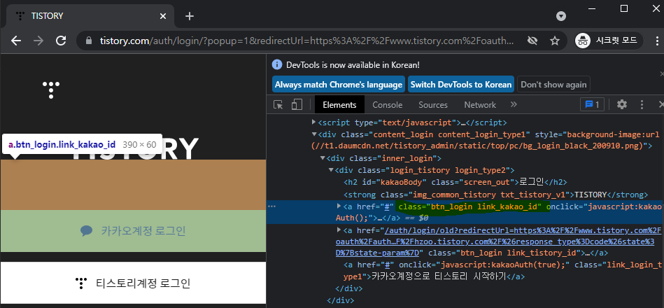 사진 8에서 카카오계정 로그인 버튼은 'btn_login.link_kakao_id' 이며,