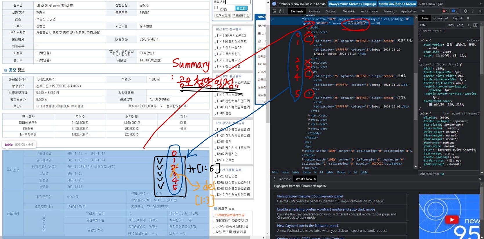 오늘을 예로 들면, 대신밸런스스팩11호, 미래에셋글로벌리츠, 신한서부티엔디리츠 세개의 url을 청약 정보로 가져온다.