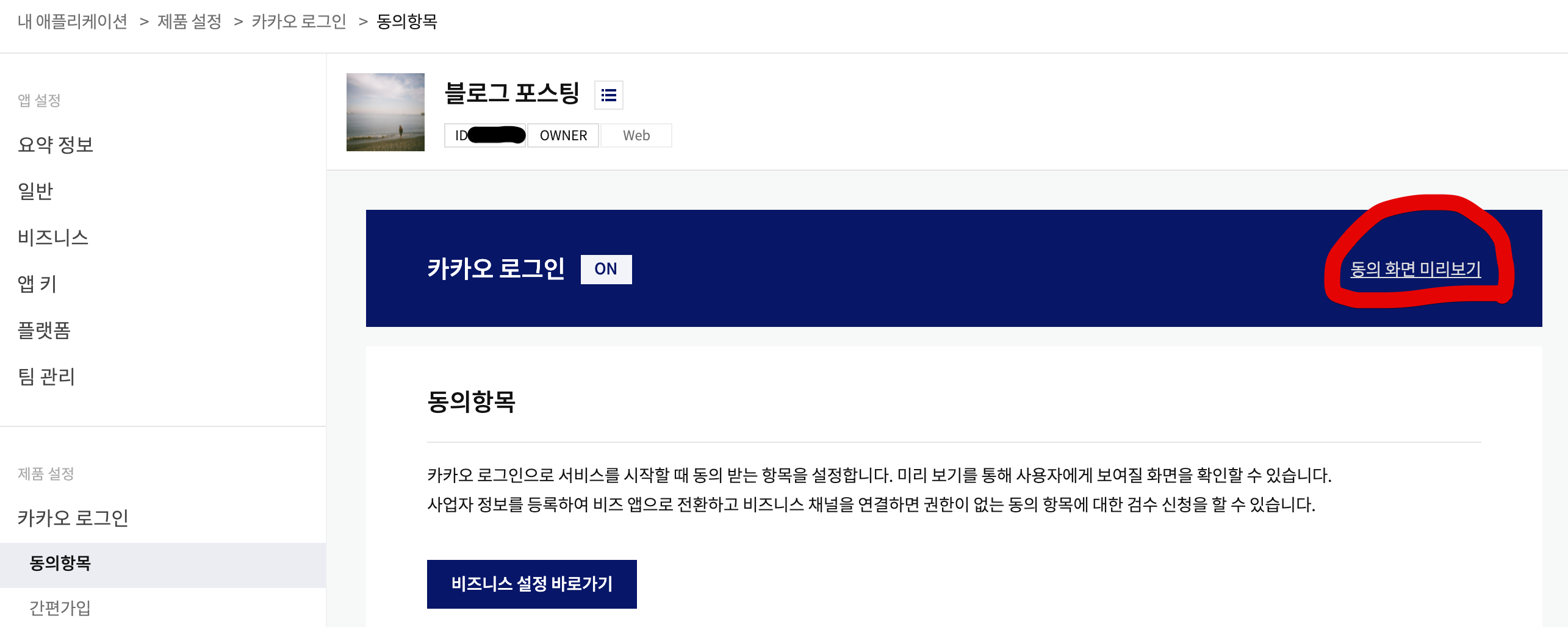 내 애플리케이션 > 앱 설정 > 요약 정보뿐만 아니라,