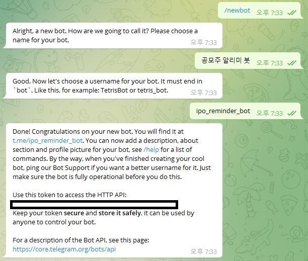 1. 텔레그램에서 봇 생성 후 API Key 발급하기